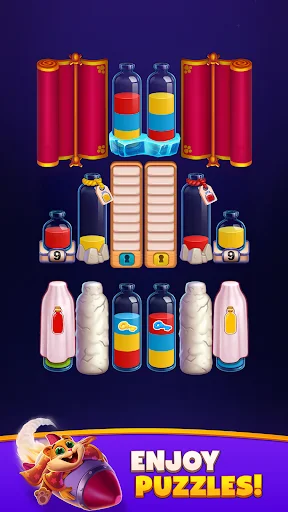 Step into the enchanting universe of **Magic Sort!**, the best free water sort app that promises to delight puzzle enthusiasts of all ages. Each level immerses you in a vibrant world where your objective is to sort colorful water into designated bottles. The gameplay is simple yet addictive: tap to select a bottle, then pour the water, aligning the colors to achieve the perfect sort. The enchanting graphics and whimsical sound effects elevate the experience, making every splash feel magical. As you progress through the spellbinding levels, each challenge increases in complexity, ensuring that your brain stays engaged and entertained. With handy features like 'Undo' and 'Shuffle', you can strategize your moves and bring a unique twist to the classic sorting puzzle genre. Get ready for a colorful escape where every challenge invites you to think critically while enjoying a visually stunning adventure.